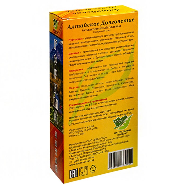 Благотворно влияет на нервную систему, улучшает настроение, нормализует сон. Регулярный прием бальзама избавит вас от нервного переутомления.