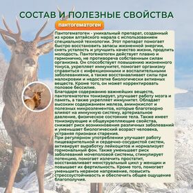 Панты – благотворно действуют на иммунную систему, артериальное давление, физическую работоспособность. Они обладают тонизирующими и общеукрепляющими свойствами.