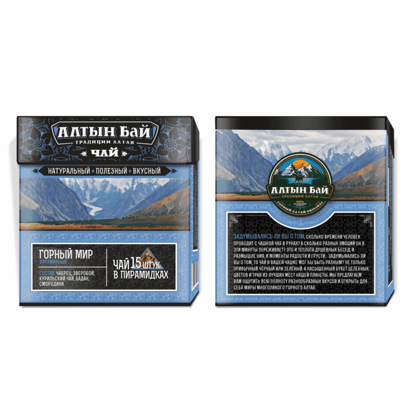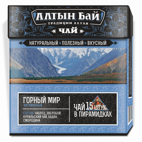 “Горный мир” – это сочетание трав, растущих в высокогорной местности, на скалах, вдоль горных ручьёв. Повышает защитные силы организма, придаёт энергию, помогает иммунитету сопротивляться болезнетворным микроорганизмам, улучшает работу пищеварительного тракта.