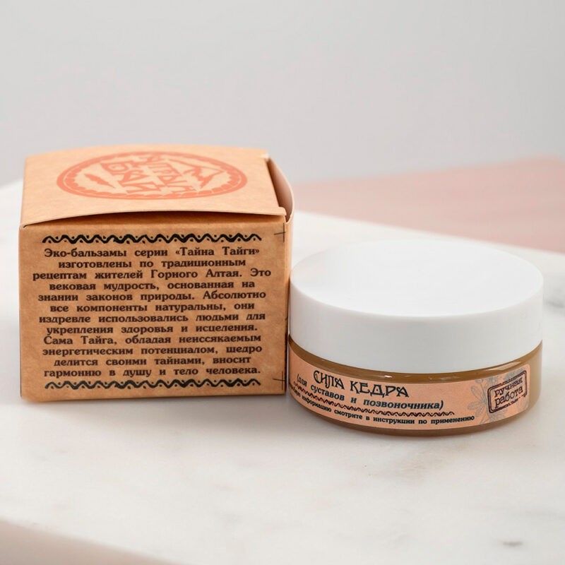 Народы, живущие в тайге, издревле отождествляли кедр с силой, воспринимали его как источник целительной космической энергии, как крепкую, нерушимую опору. Основа этого бальзама – масло кедрового ореха, сосредоточение жизненной силы. Оно напитано экстрактами лучших трав Горного Алтая, способных исцелить заболевания опорно-двигательной системы.