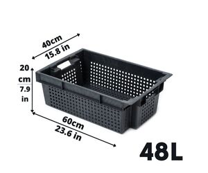 Ящик пластиковый для хранения овощей и фруктов черного цвета, 600*400*200 мм