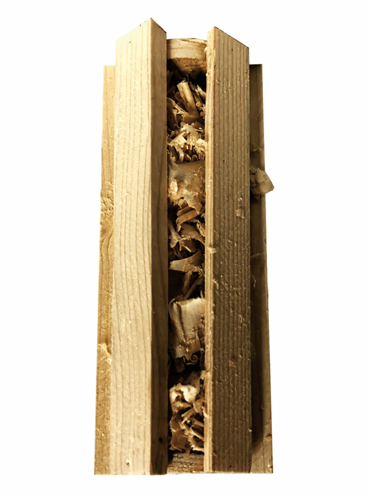 За основу капсулы взята высушенная еловая древесина, а основным элементом возгорания является сухая стружка. Эффект от такой капсулы 100% даже при разжигании сырых дров. Нет нужды искать сухие мелкие ветки, колоть щепу либо правильно укладывать костер, температуры и времени горения капсулы достаточно чтобы разжечь практически при любых условиях.