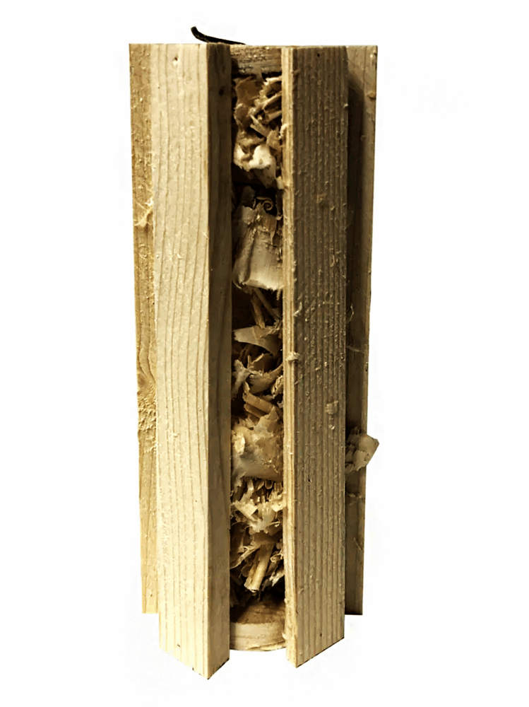 За основу капсулы взята высушенная еловая древесина, а основным элементом возгорания является сухая стружка. Эффект от такой капсулы 100% даже при разжигании сырых дров. Нет нужды искать сухие мелкие ветки, колоть щепу либо правильно укладывать костер, температуры и времени горения капсулы достаточно чтобы разжечь практически при любых условиях.