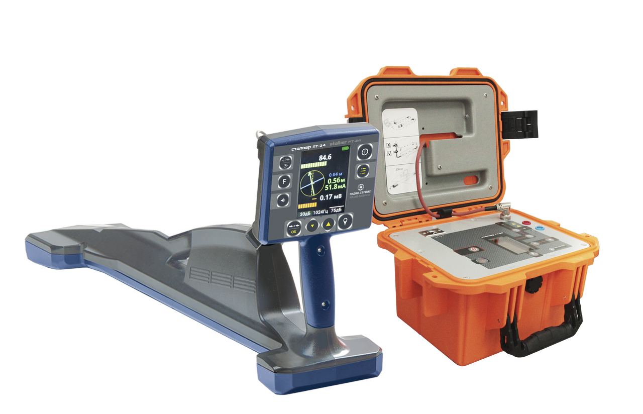 В комплект поставки трассоискателя «Сталкер 80-24» входит генератор ГТ-80 (LFP )и приемник ПТ-24 со встроенным GPS/ГЛОНАСС модулем.