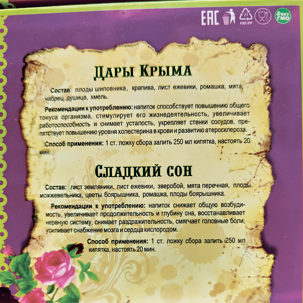 Изготовлен из экологически чистых растений, собранных в заповедных зонах Крыма.