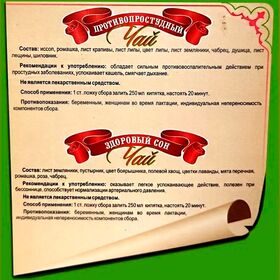 Состав: иссоп, ромашка, лист крапивы, лист липы, цветы липы, лист земляники, чабрец, душица, лист лещины.
