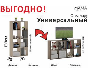 Стеллаж "Универсальный", 70*25*138, цвет: Венге Темный, Ясень Шимо Светлый
