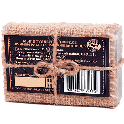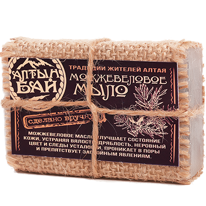Мыло туалетное твёрдое «Можжевеловое» – это исключительно натуральные ингредиенты, ручная работа и огромная польза для здоровья кожи. Уникальная технология производства позволяет сохранить все полезные вещества используемых компонентов, которые подарила природа Алтайского края. Можжевеловое масло в составе мыла оказывает благотворное влияние на состояние кожи, устраняет вялость и дряблость, тонизирует, выравнивает цвет и рельеф.