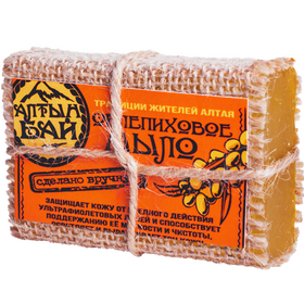 Мыло туалетное твёрдое «Облепиховое» – это исключительно натуральные ингредиенты, ручная работа и огромная польза для здоровья кожи. Уникальная технология производства позволяет сохранить все полезные вещества используемых компонентов, которые подарила природа Алтайского края. Облепиховое масло в составе мыла благотворно влияет на кожный покров, защищает от вредного действия ультрафиолетовых лучей, осветляет, выравнивает цвет и тон, делает кожу мягкой и шелковистой.