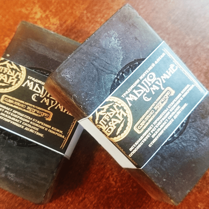 Мыло натуральное ручной работы «С мумиё» – это исключительно натуральные ингредиенты, ручная работа и огромная польза для здоровья кожи. Уникальная технология производства позволяет сохранить все полезные вещества используемых компонентов, которые подарила природа Алтайского края. Мыло обогащено целебными свойствами мумиё, которое препятствует старению кожи, способствует регенерации клеток эпидермиса, глубоко очищает и тонизирует.