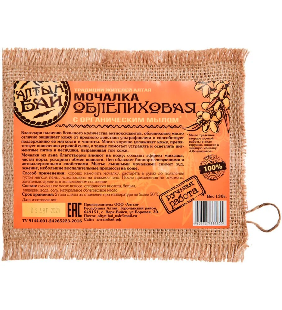2. Мочалка льняная с наполнителем “ОБЛЕПИХОВАЯ”, 130 гр.