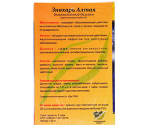 Бальзам безалкогольный на травах ЗНАХАРЬ АЛТАЯ противопростудный, стекло 250 мл.