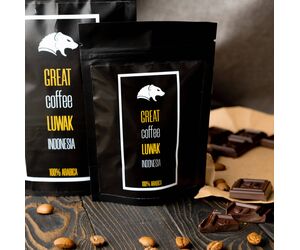 Great coffee LUWAK / Оригинальный кофе Лювак (Kopi Luwak), в зернах, 100 гр