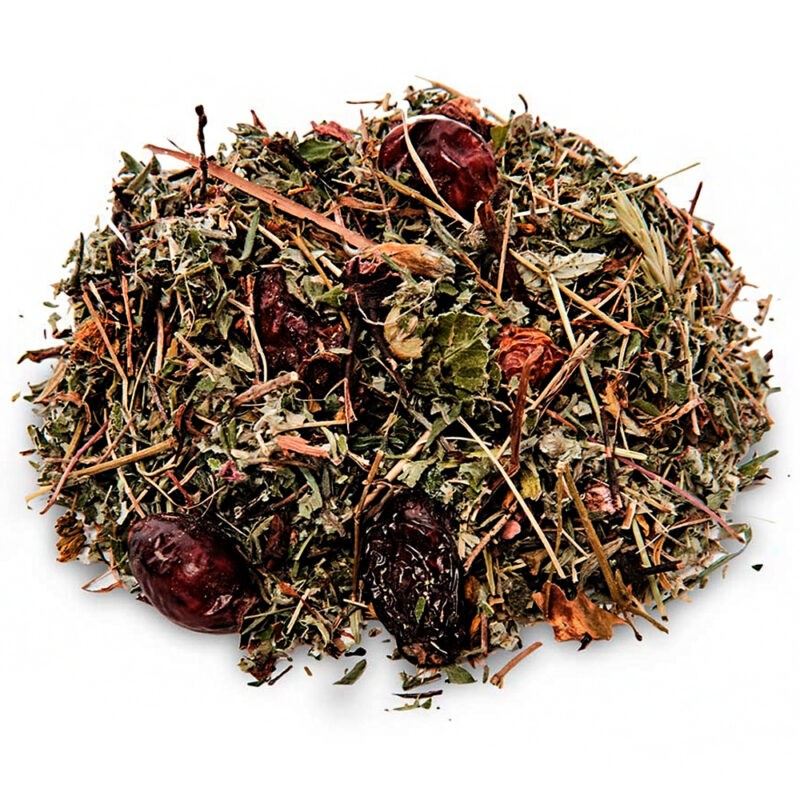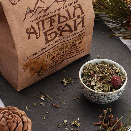 Состав: курильский чай, зверобой, чабрец, красная щетка, шиповник, лист малины, лист земляники.