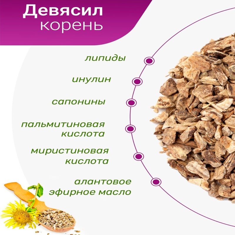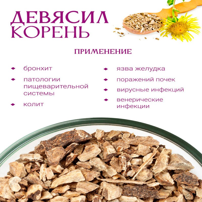 Девясил помогает в нормализации обменных процессов и усилении аппетита, его применяют в лечении патологий пищеварительной системы, лечения различных видов ран и язвенных дефектов. Также, девясил активно работает при различных гинекологических проблемах, настои и отвары борются с глистными инвазиями. Полезно растение в лечении гриппа, поражений почек и вирусных и инфекций, препараты с девясилом применимы при колитах и язвенной болезни, а также при венерических инфекциях.