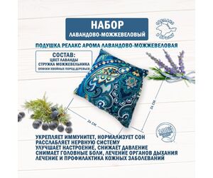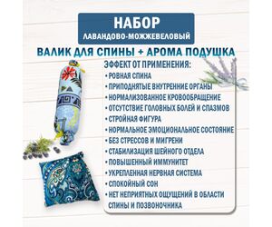 Набор ЛАВАНДОВО-МОЖЖЕВЕЛОВЫЙ. Валик для спины и шеи + арома подушка