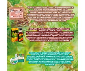 Набор КЕДРОВЫЙ малый. Мочалка для тела, бальзам медовый, твердый шампунь, мыло натуральное, зубная паста