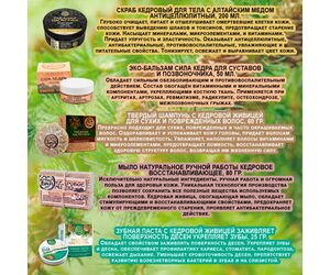 Набор КЕДРОВЫЙ средний. Мочалка для тела, крем натуральный, бальзам медовый, бай чай, твердый шампунь, мыло натуральное, эко-бальзам, зубная паста