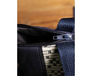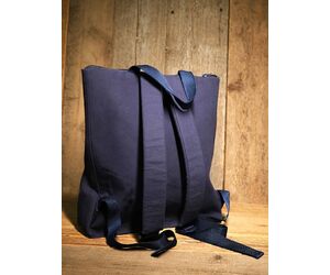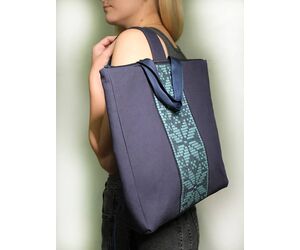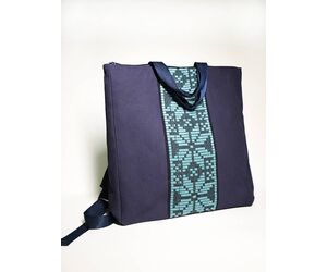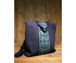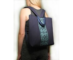 Рюкзак синего цвета, с тканой вставкой "Счастливая звезда", ручная работа и экологичные материалы 28х35.5 см
