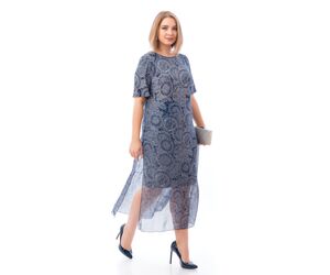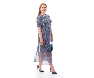Sakton - blouse elongated, with V-neck "Flora decor"