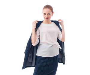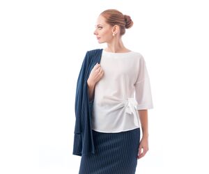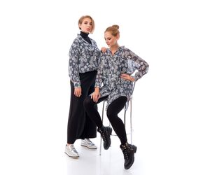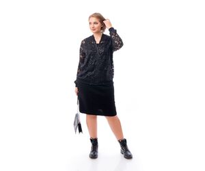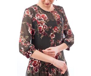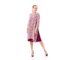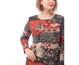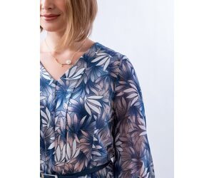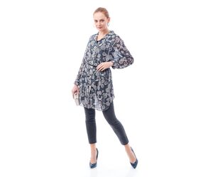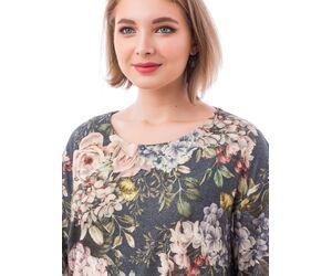 Sakton - blouse elongated, with V-neck "Flora decor"