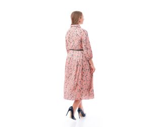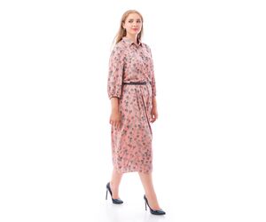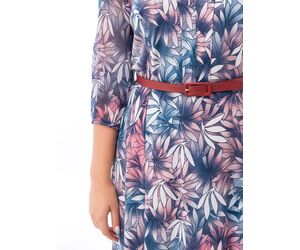 Sakton - dress 4887 with a deep slit "Flamingo Leaves"
