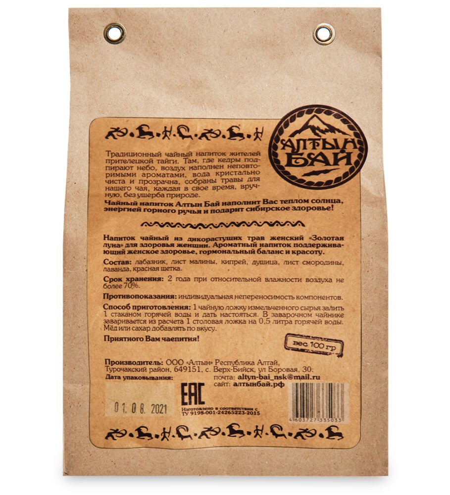 Напиток чайный из дикорастущих трав ЗОЛОТАЯ ЛУНА для женского здоровья, крафт 100 гр.;