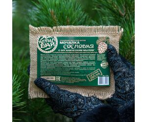 Linen washcloth with organic soap "PINE" cleansing, 130 gr.