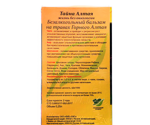 Non-alcoholic balm "The SECRET of ALTAI" life without oncology, 250 ml.