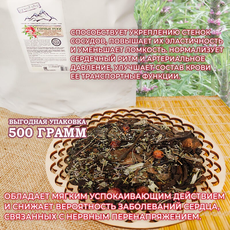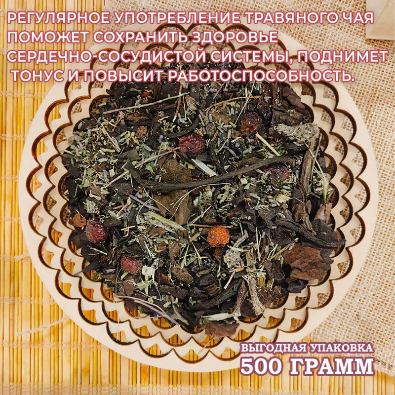 Назначение: Напиток способствует укреплению стенок сосудов, повышает их эластичность и уменьшает ломкость. Нормализует сердечный ритм и артериальное давление, улучшает состав крови ее транспортные функции. Обладает мягким успокаивающим действием и снижает вероятность заболеваний сердца, связанных с нервным перенапряжением. Регулярное употребление травяного чая поможет сохранить здоровье сердечно-сосудистой системы, поднимет тонус и повысит работоспособность.