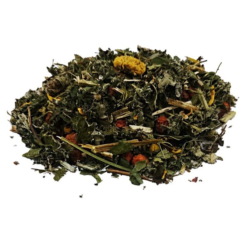 Состав: Лабазник, иван-чай, душица, лист малины, лист смородины, мята, календула, ромашка, рябина.