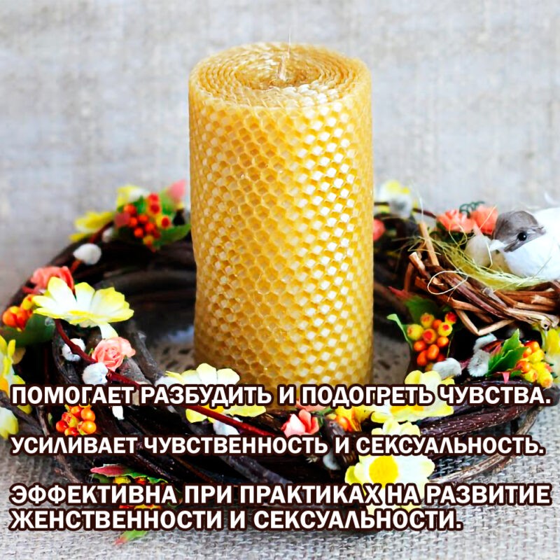 Свеча помогает разбудить и подогреть чувства. Усиливает чувственность и сексуальность. Эффективна при практиках на развитие женственности и сексуальности.