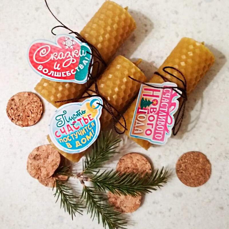 Крученые свечи из натуральной вощины с приятным медовым ароматом.