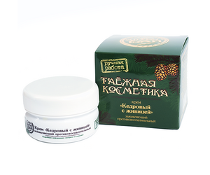 Крем натуральный ручной работы КЕДРОВЫЙ С ЖИВИЦЕЙ заживляющий, противовоспалительный, 50 мл.