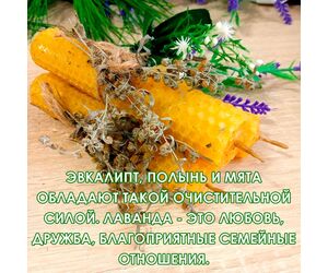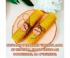 Свеча из вощины С ТРАВАМИ 13x3 см.