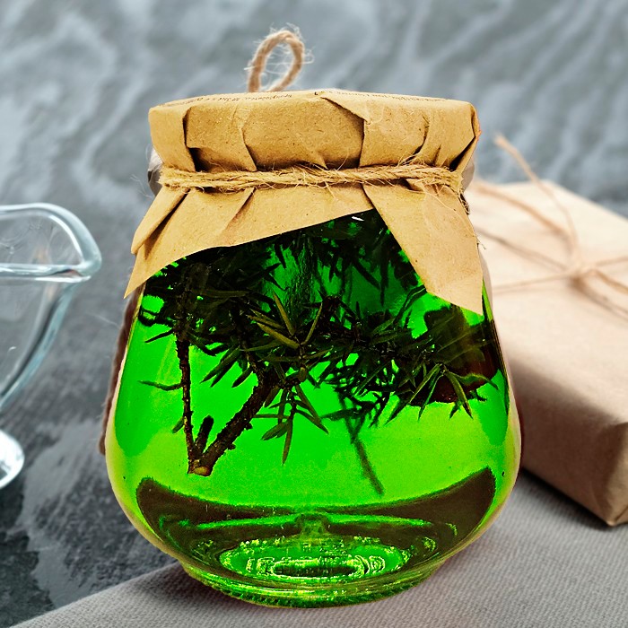 Состав: можжевельник, сахар, вода, лимонная кислота, натуральный краситель.