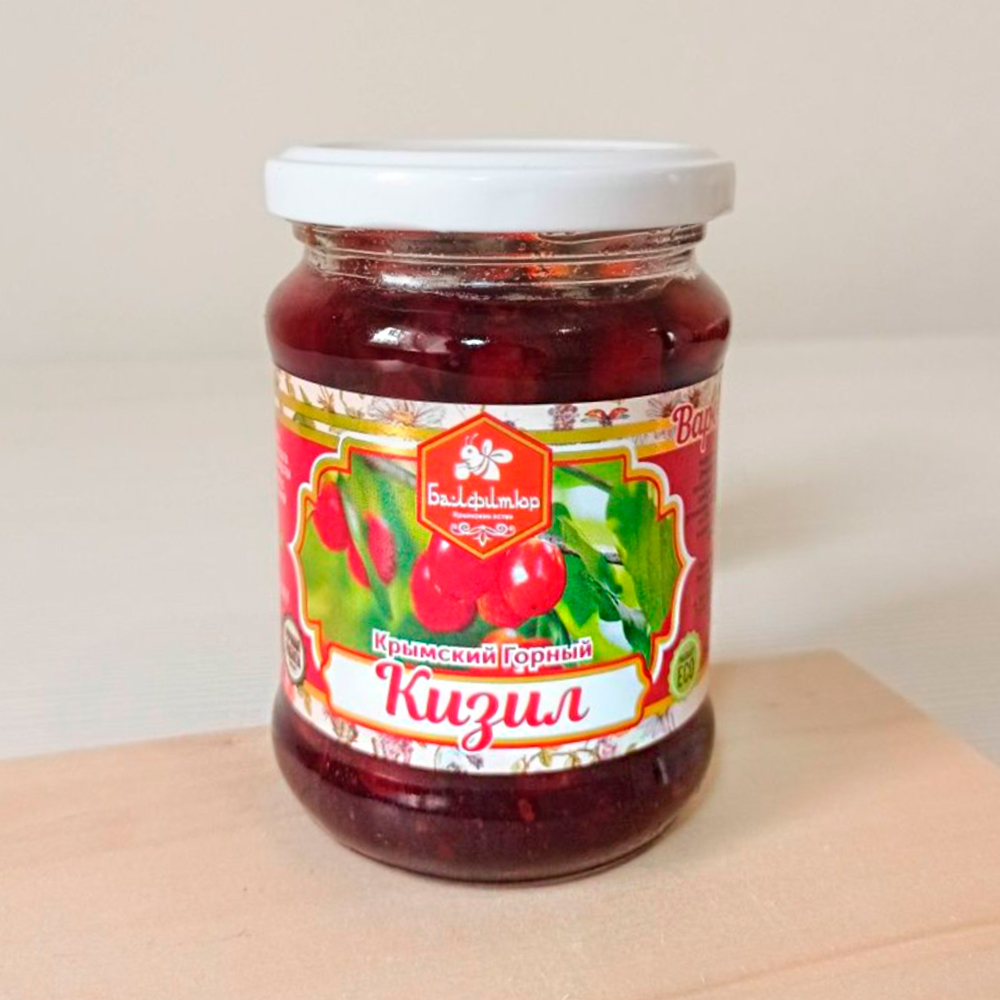 Состав: Кизил, сахар-песок, вода питьевая, лимонная кислота.