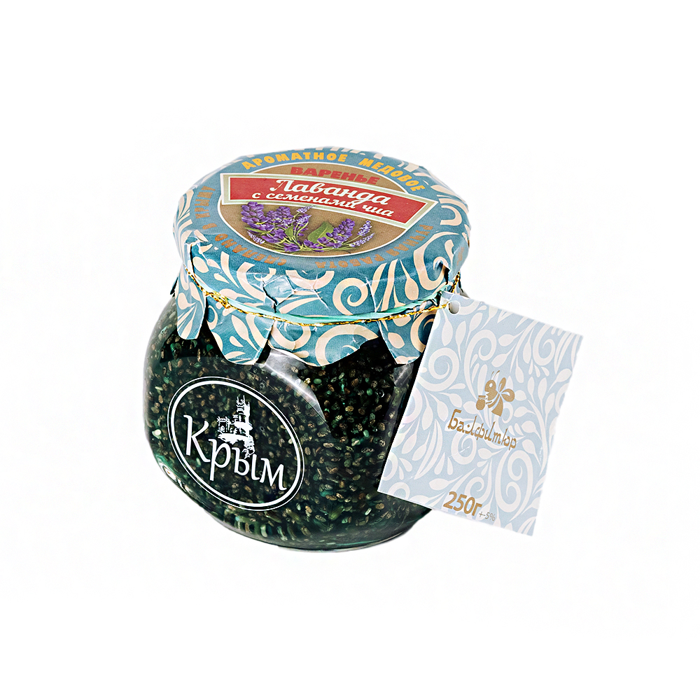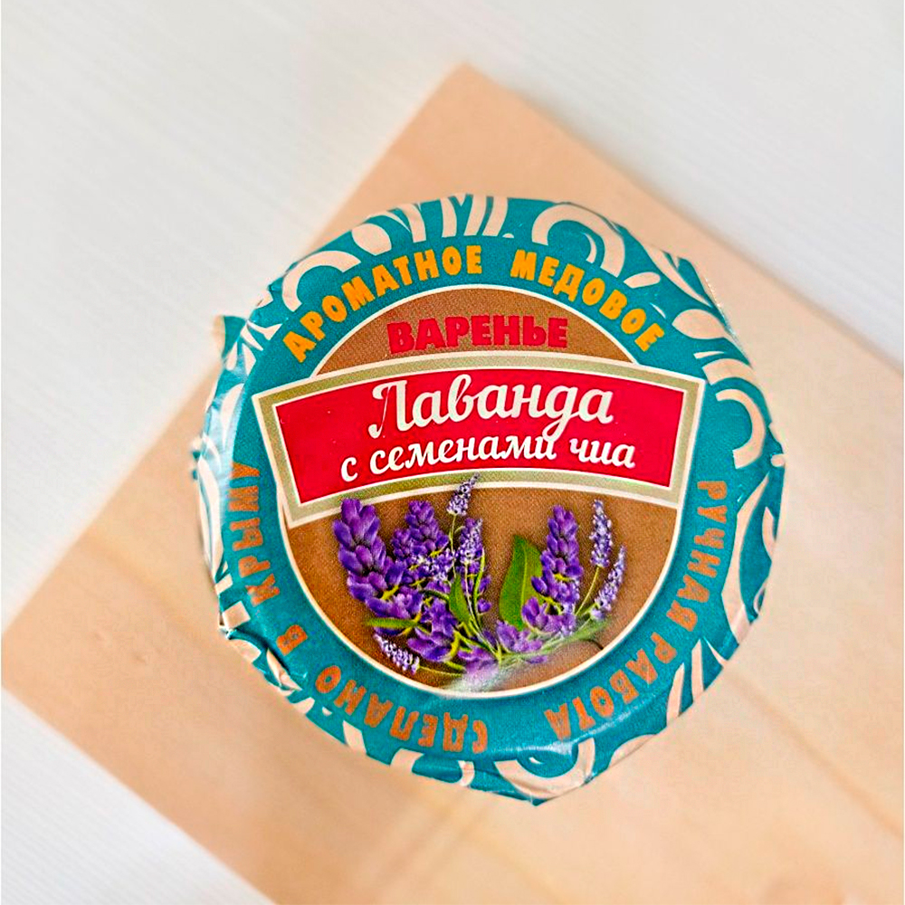Состав: Лаванда, семена чиа, вода, мед, сахар, натуральный краситель, лимоная кислота.