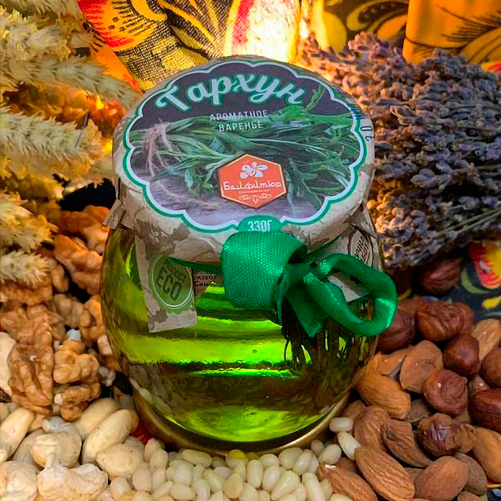Благодаря бережной термической обработке и отсутствию консервантов варенье сохраняет богатый натуральный состав растения тархун. В нем содержится полезный для зрения витамин А, аскорбиновая кислота, флавоноиды, большое количество магния и фосфора.